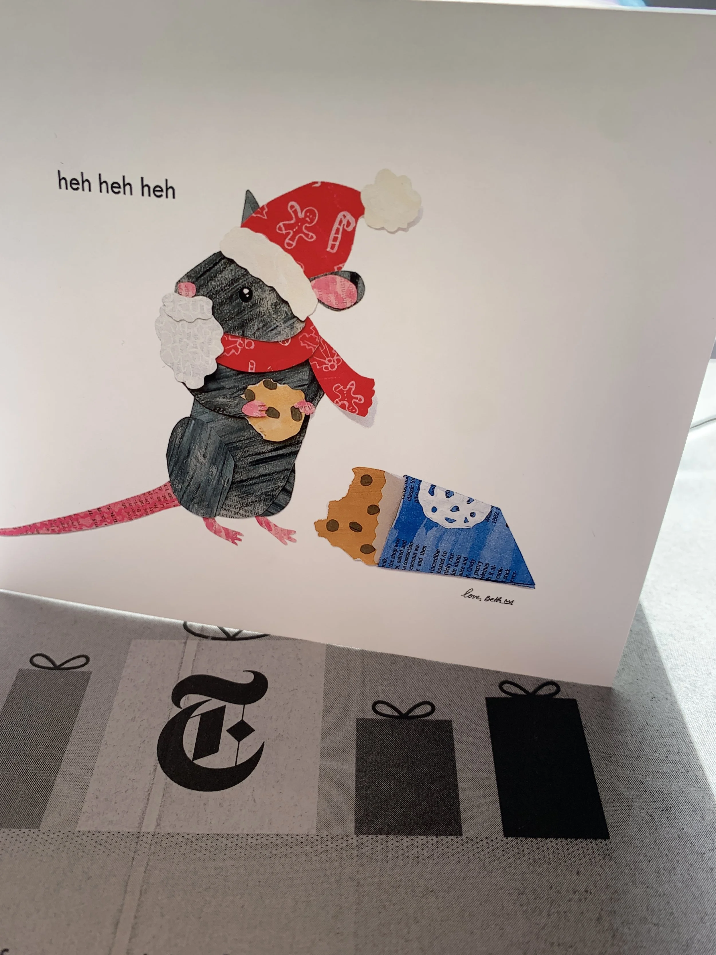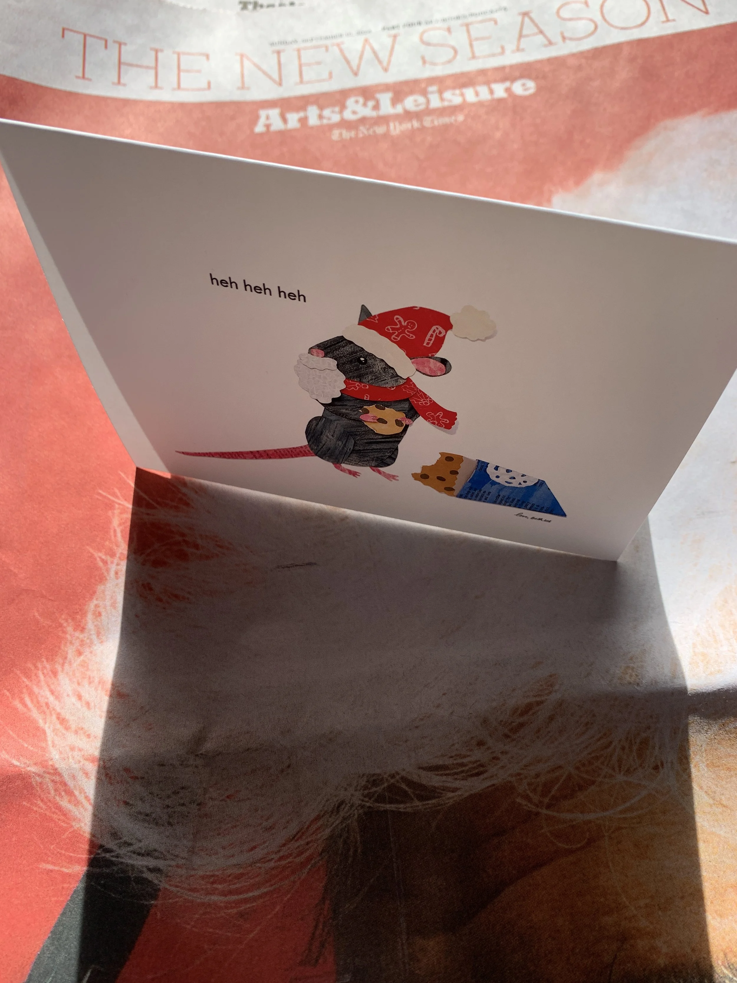 He He He! That’s not Santa!! It’s a rat stealing a cookie! On a greeting card!